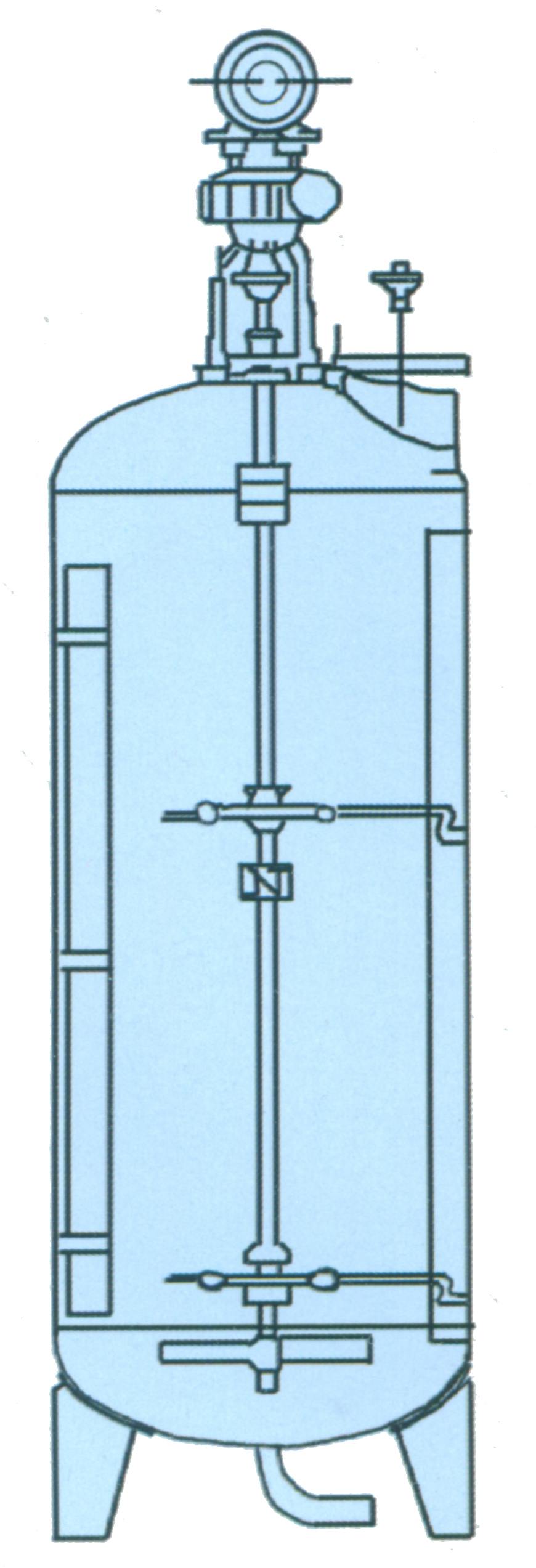 一、概述 配料罐是一種為發酵罐提供基礎料的附屬設備。為在設備中得到汽一一固混和良好的基礎料,罐內設置了擋板和攪拌器,擋板尺寸根據罐體直徑和高度而定,攪拌器采用漿葉,其尺寸由罐體直徑而定。為了使料汽能無泄漏地輸送到發酵罐內,我們一改以往用泵輸送的方法,采用空氣壓料,因此本設備又具有良好的密封性能,(采用機械單端面軸封)在考慮到操作人員能經常觀察到罐內料汽翻動情況,以及了解料汽輸送全過程,設計時配置了兩只視鏡用于觀察。投料口也是入孔,檢修人員可以通過鐵梯到罐內進行安裝和檢修。為了方便開啟操作,在上封頭設置的換管均放在靠入口的右邊,用右手開啟閥門方便,所以該設備具有良好的使用價值。 |