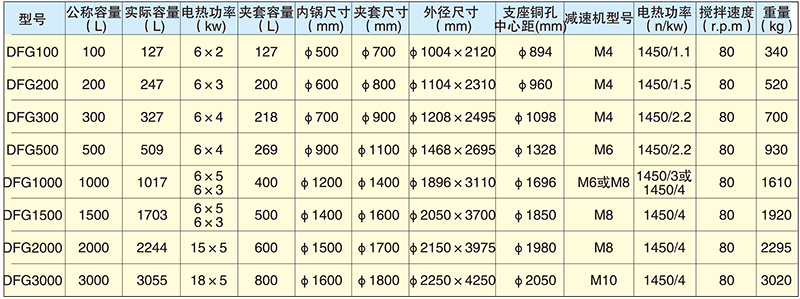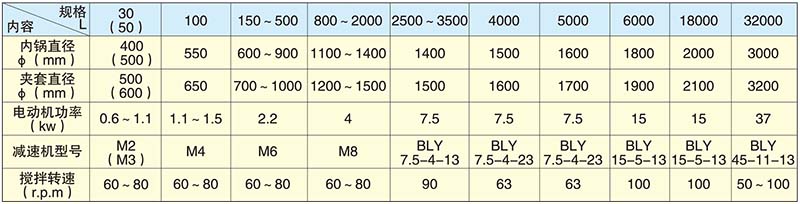 三、電加熱反應釜品種規格、主要技術參數表